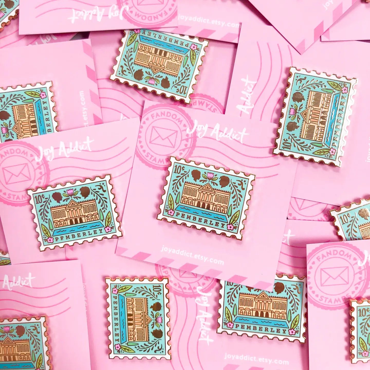 Dive into the world of Jane Austen with our Pemberley Enamel Pin! Capturing the essence of the iconic estate from "Pride and Prejudice," this charming accessory adds a touch of literary flair to any outfit. Let your bookish side shine with our collection of Austentatious stamp pins, perfect for expressing your love for classic literature in style!