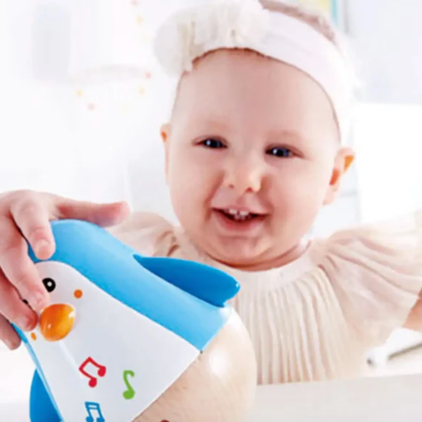 A perfect addition to play time! This funny penguin is also a roly-poly toy that a child can bat at without it rolling away. The Penguin’s arms shake amusingly when waddling. This inspires hours of fun when your little one plays with this unique wooden toy. The musical toy with a built-in bell makes a soothing tinkling sound as it waddles along cutely, which helps to pacify the baby. The moderate volume is designed to protect sensitive young ears. Child-safe paint finish and sturdy wood construction make this a long-lasting toy your child will love for years to come.