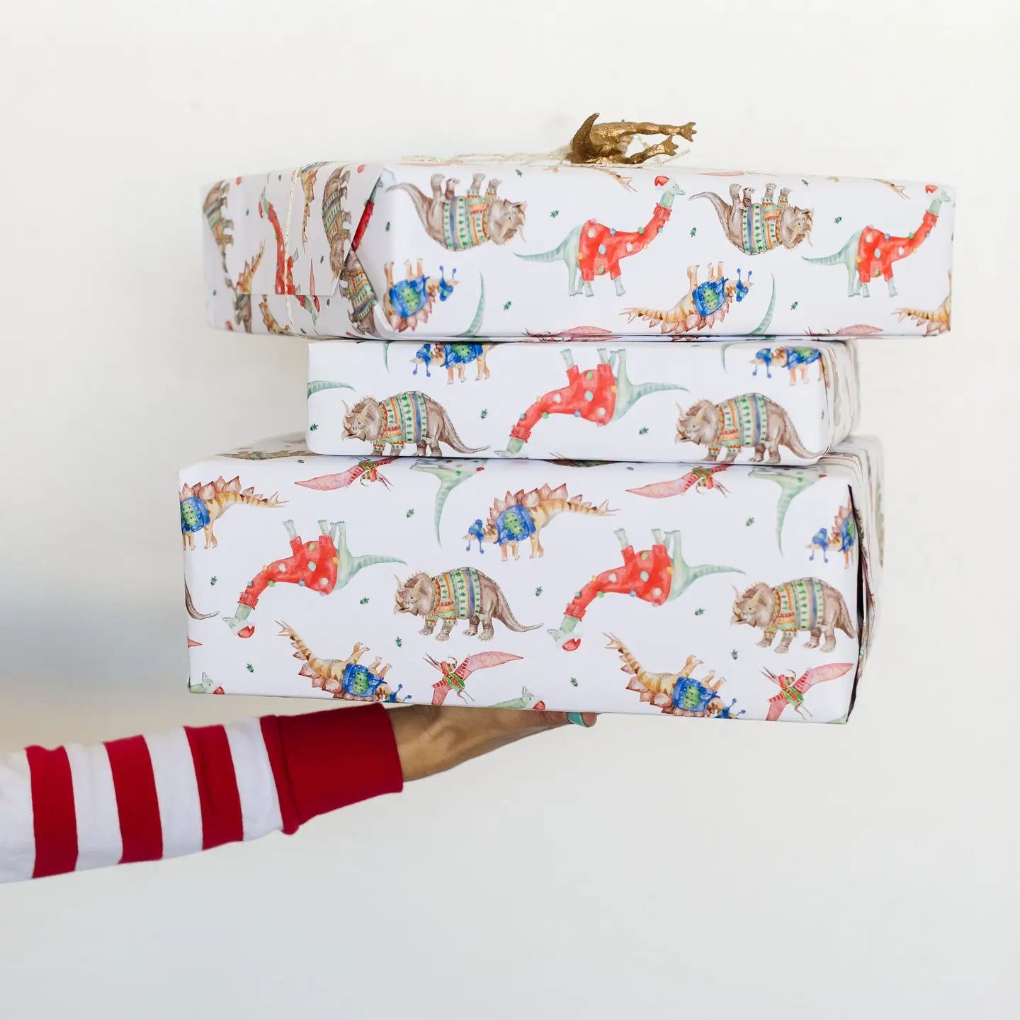 We absolutely love gift-giving around the holidays and wrapping up some happy for the people we treasure the most! This hand-illustrated giftwrap featuring festive dinosaurs is sure to up your gifting game with something special during the winter season.