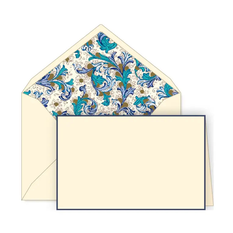 100% Cotton Bordered Folded Cards Letter Set (Traditional Florentine Blue)