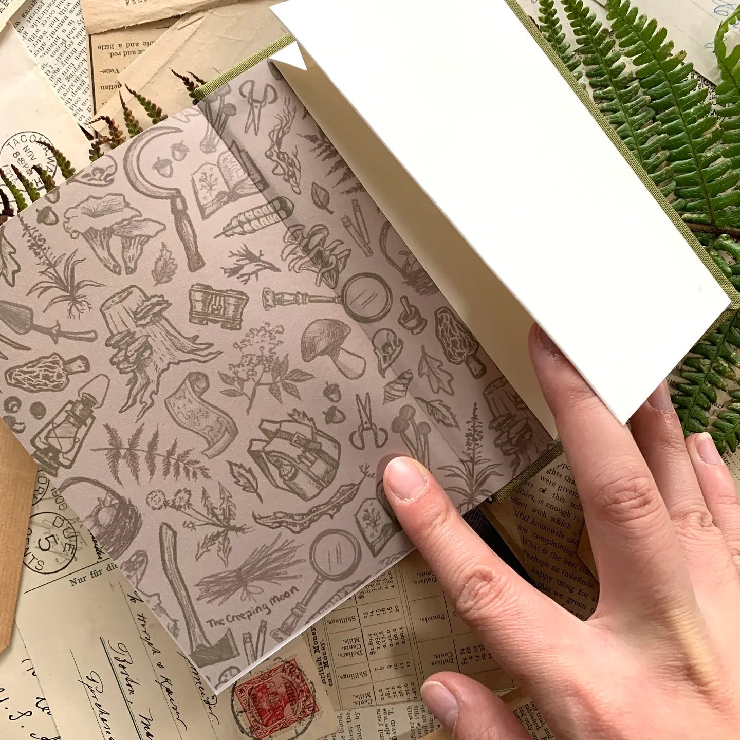 A pocket journal for your foraging adventures, now in green! This field log is undated, and arranged into 'trips.' Each trip has a section for writing down the location, date, habitat info, specimens found, recipes, and miscellaneous notes.