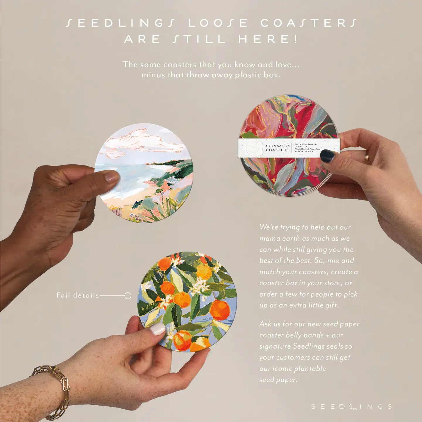 These loose coasters feature hot foil stamped designs, which are corked-backed and heat + water resistant. Your coffee table's new best friend and sure to elevate your dinner party's tablescape.