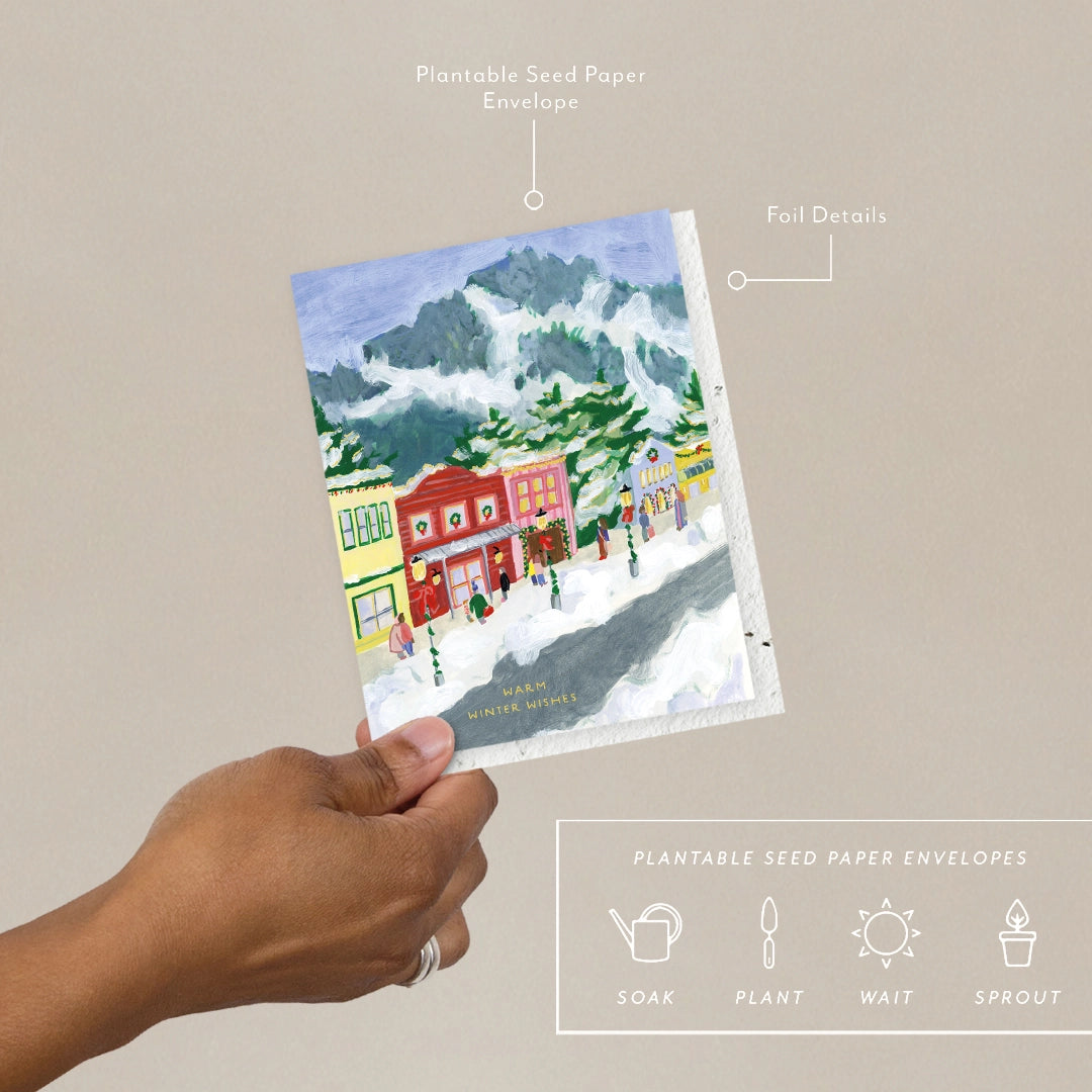 All Seedlings cards are paired with a plantable seed paper envelope which is embedded with non-invasive wildflower seeds. When planted, these envelopes compost away leaving only flowers behind. They are accented with foil details.