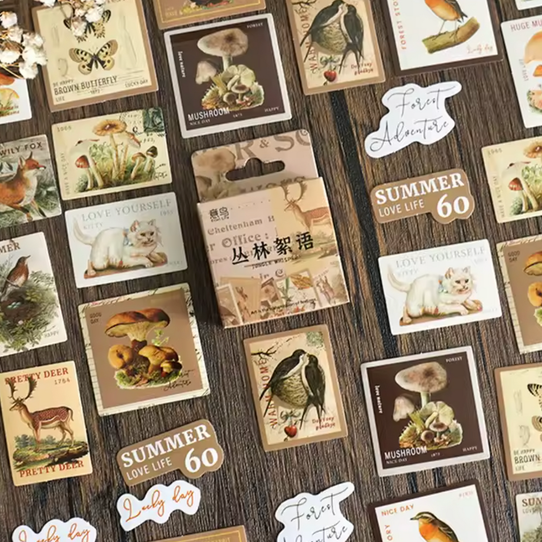 Vintage Forest Stamp Stickers (Pack of 45)