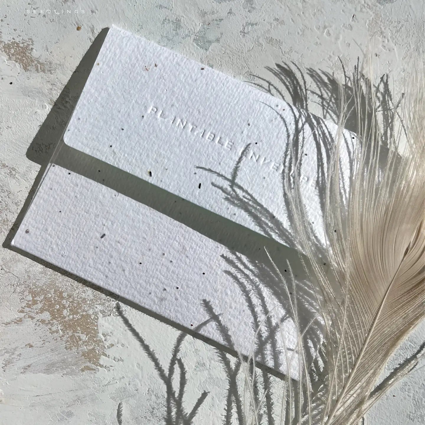 All Seedlings cards are paired with a plantable seed paper envelope which is embedded with non-invasive wildflower seeds. When planted, these envelopes compost away leaving only flowers behind. They are accented with foil details.