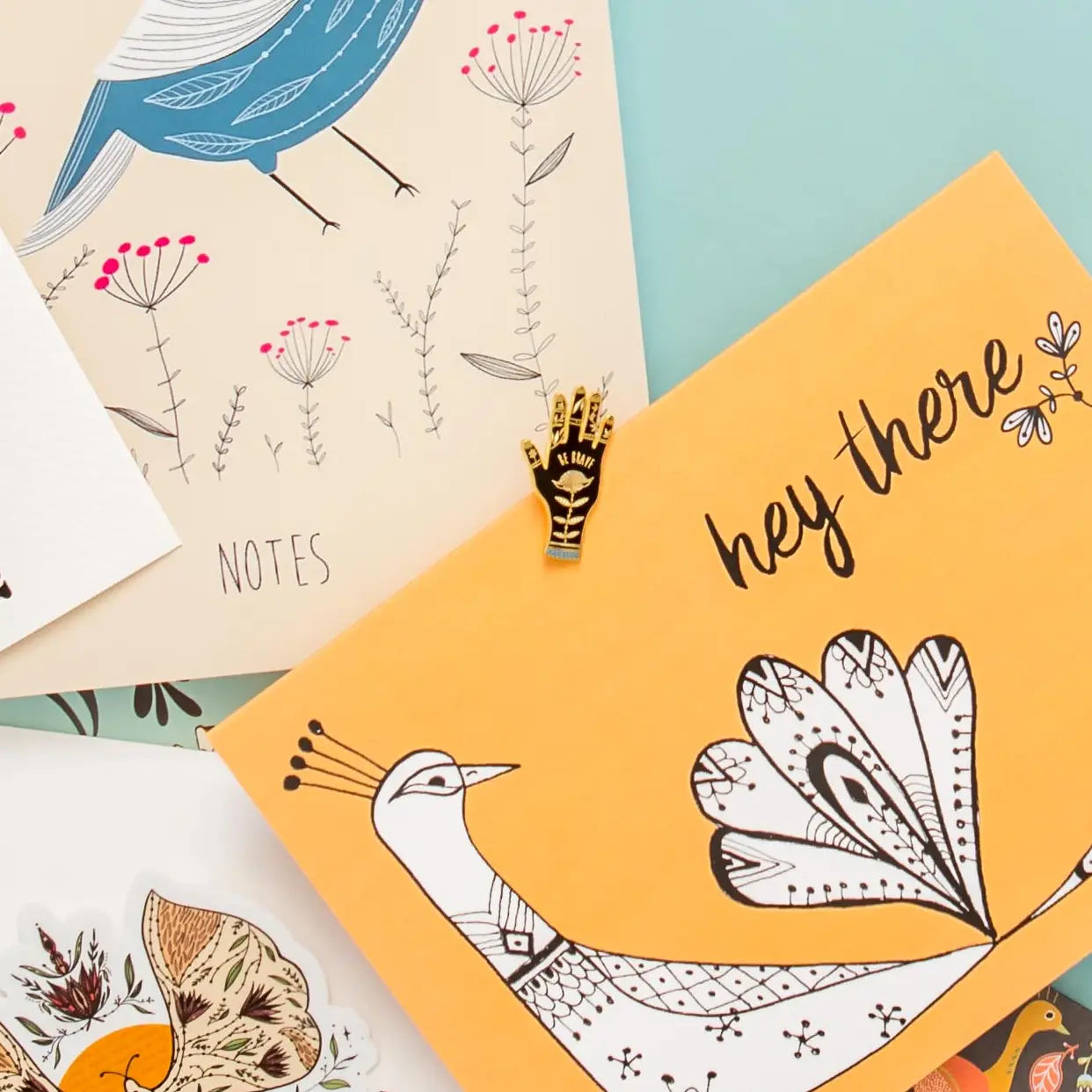 Elevate your accessory game with the Be Brave Hard Enamel Pin. This pin features an intricately drawn, henna-inspired design in black, gold, soft coral, and green. The focal point is a delicately illustrated hand, symbolizing courage and strength, making it an empowering addition to jackets, purses, or backpacks. Designed for those who appreciate unique, artist-made treasures, this pin is perfect for milestone celebrations such as graduations, birthdays, or as a thoughtful “just because” gift.