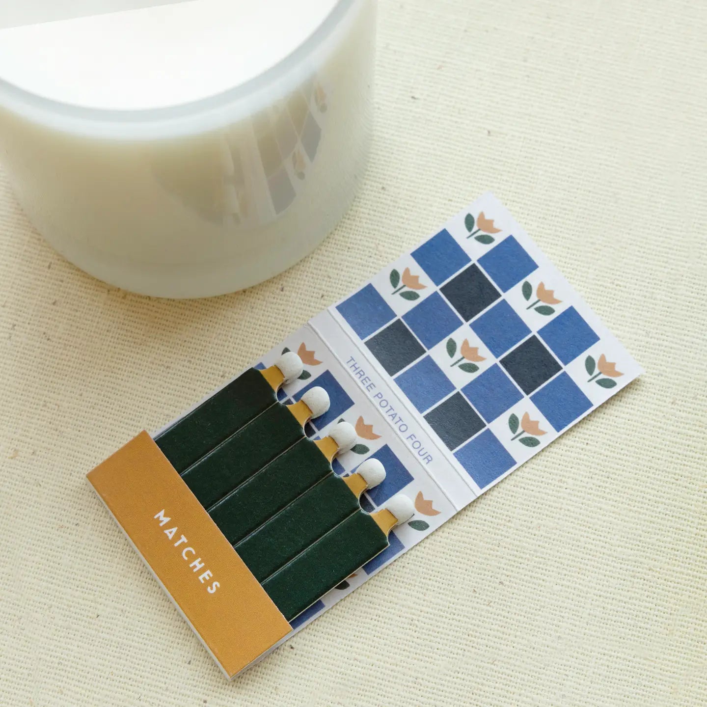 A handy little matchbook with 10 double-sided matchsticks and a printed cover. Good-looking enough to leave out. Handy enough to keep one in every room. Designed to feel a little familiar—a small nod to vintage collectible matchbooks that your grandparents used to collect.