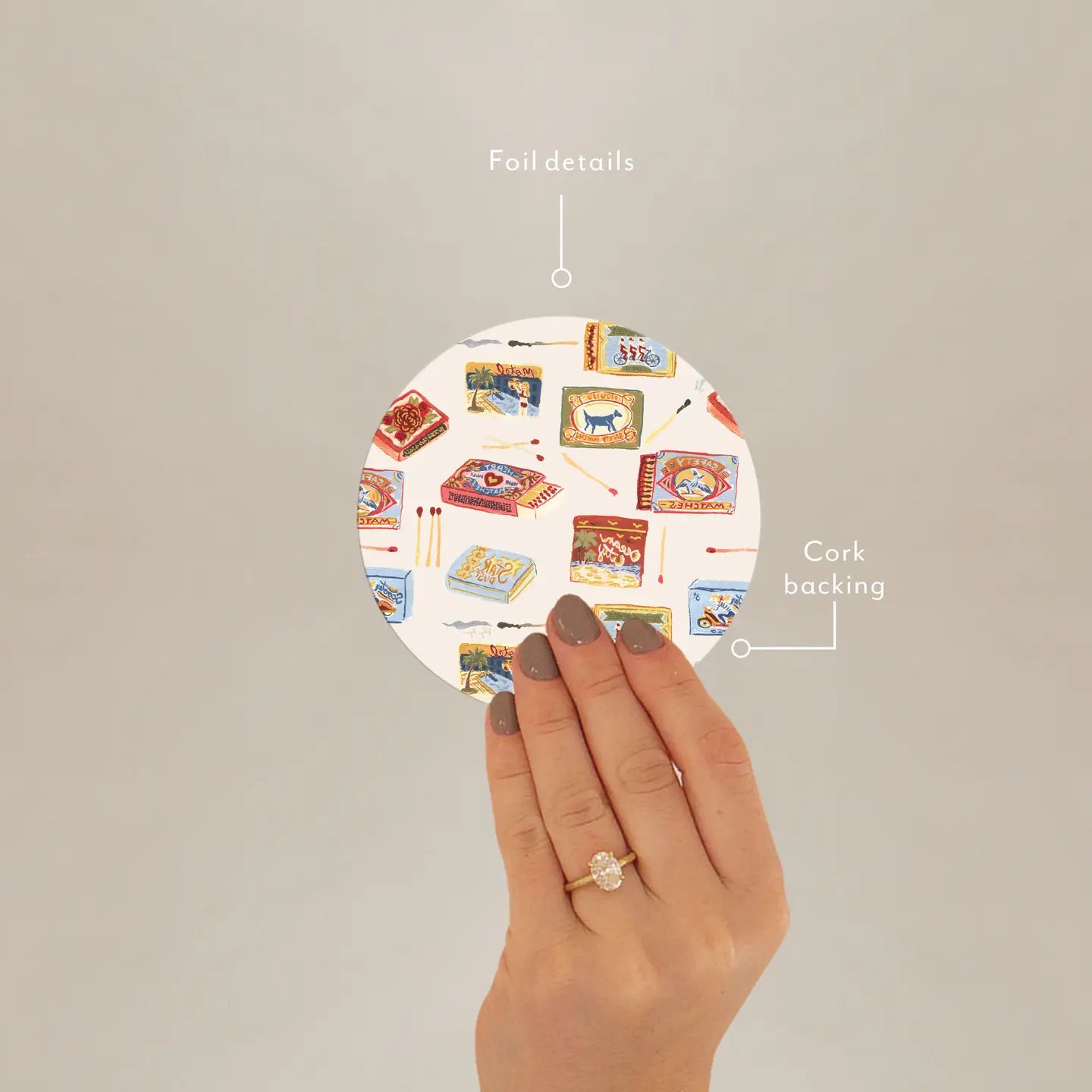 These loose coasters feature hot foil stamped designs, which are corked-backed and heat + water resistant. Your coffee table's new best friend and sure to elevate your dinner party's tablescape.