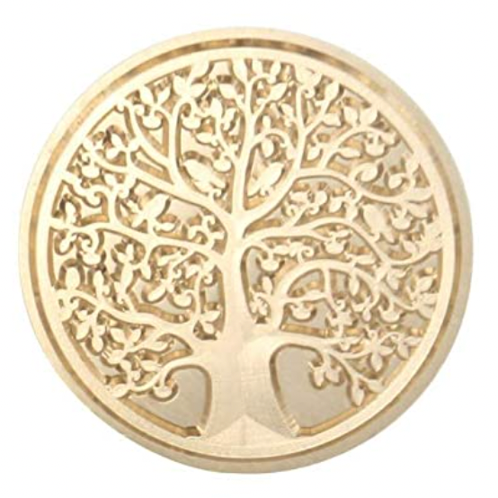 This is a 1 1/4" interchangeable brass die. This stamp make seals that are roughly 1 1/2" to 1 5/8", depending on how much wax you use.