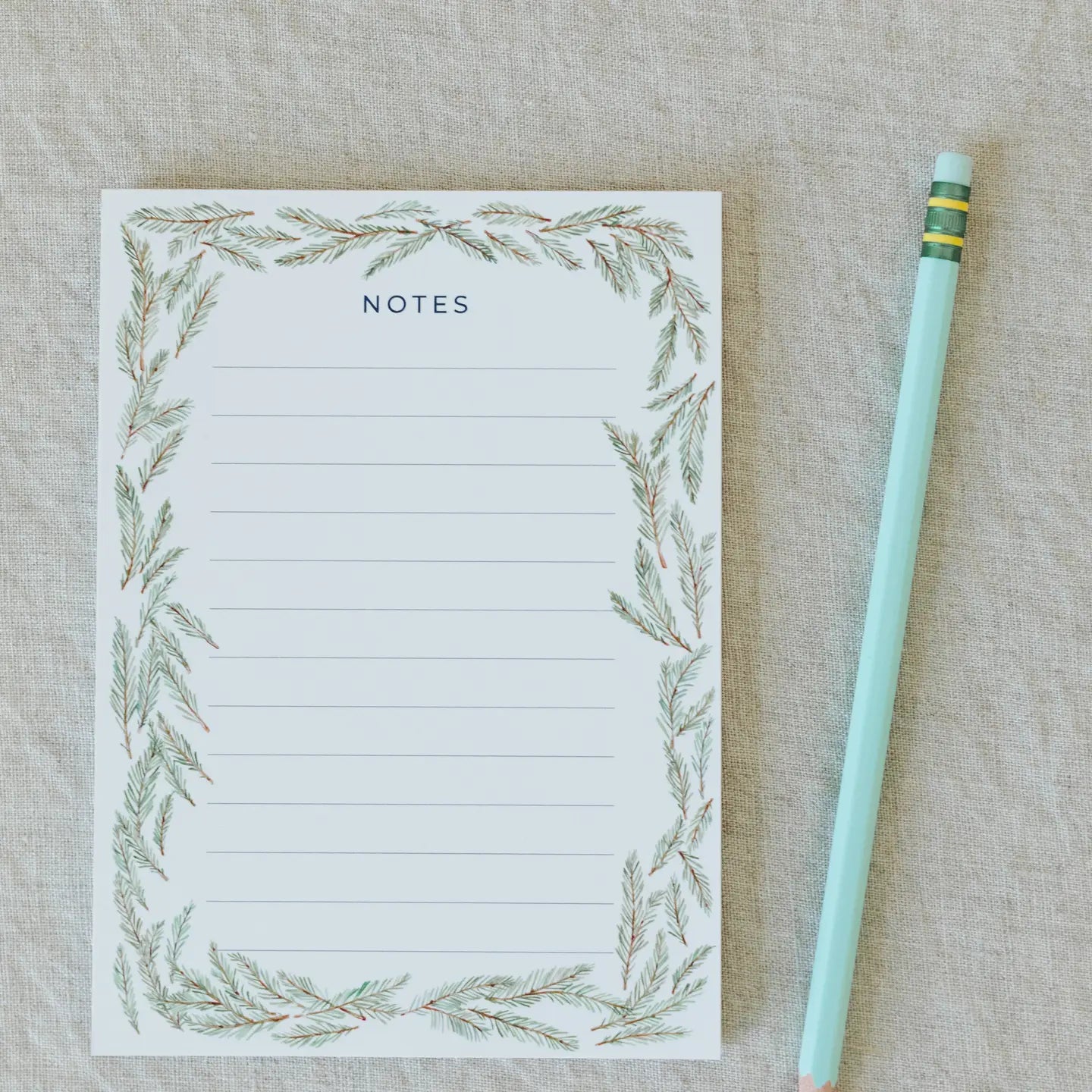 Bring a touch of the outdoors to your desk with this Mountain Evergreen Notepad. The centered lines ensure neatness, making it perfect for detailed planning and organizing. The delicate illustrations of evergreen branches make it a perfect gift for nature enthusiasts and productivity seekers alike.