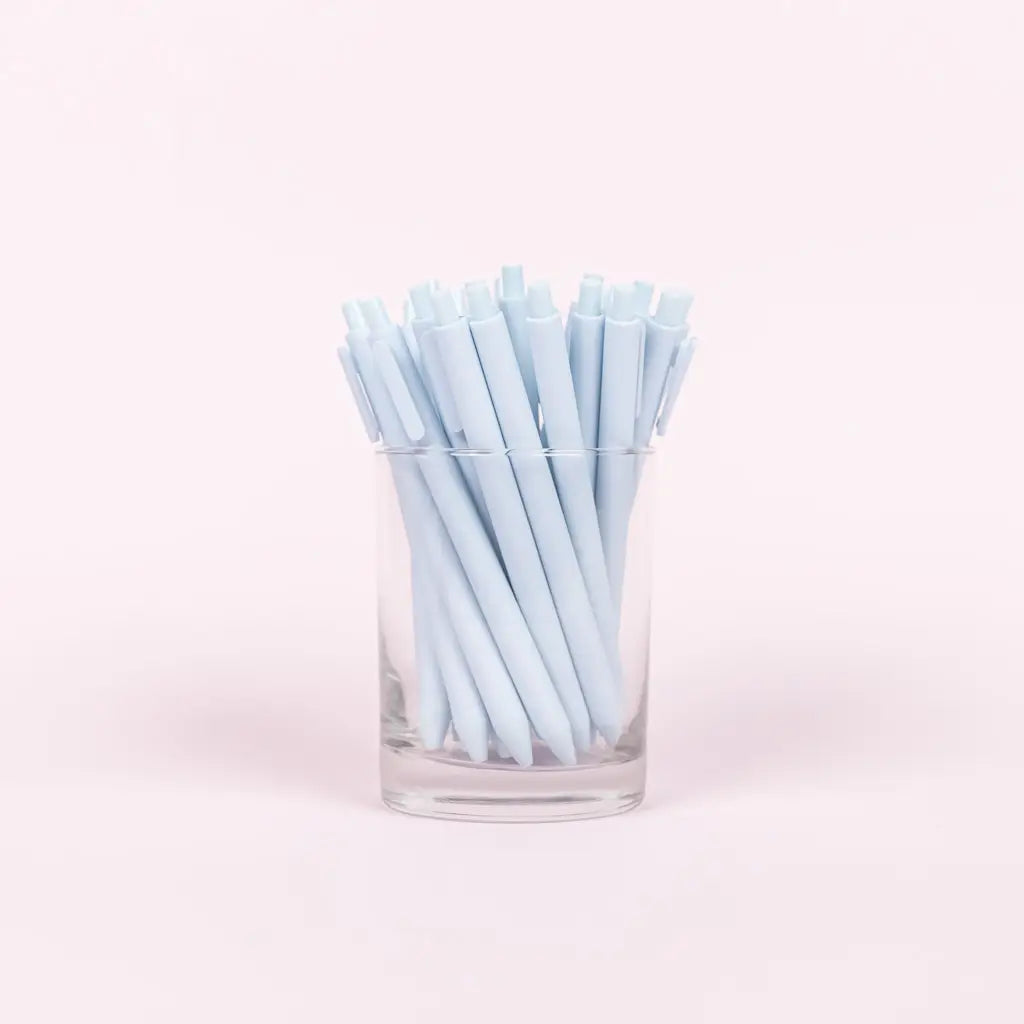 Pens have a smooth gel ink color that matches their barrel color, with the exception of Navy, Gold, White, Grey, and Metallic barrels, which have black ink.